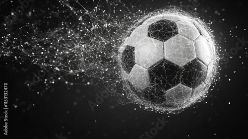 © Nari, Fototapeta premium A soccer ball of particles. A soccer ball consists of small circles and dots.