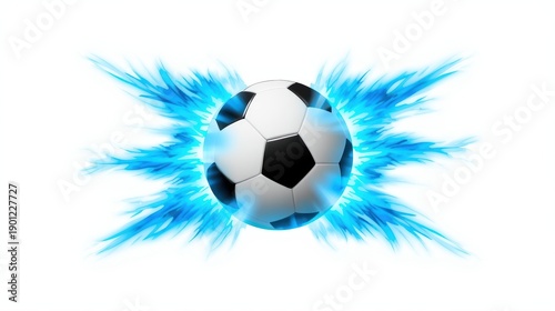 © Arif, Obraz premium A soccer ball surrounded by a dynamic burst of blue energy.