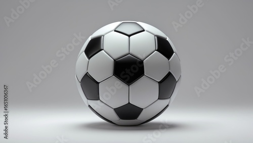 Fototapeta premium A soccer ball with a traditional black and white hexagon and pentagon pattern.