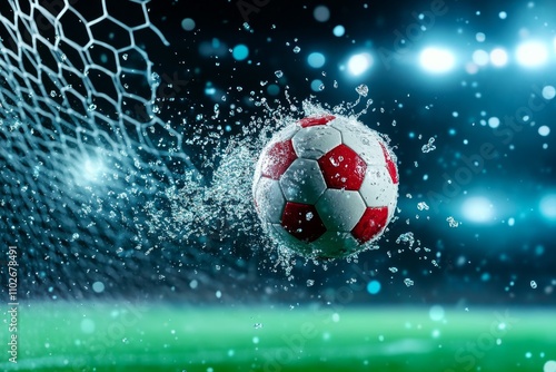 Fototapeta premium A soccer goalie diving to make a spectacular save, the ball inches from their...