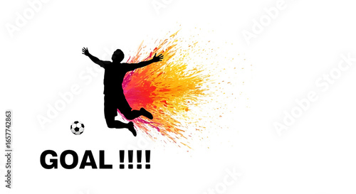 Naklejka premium A soccer player silhouette jumping in celebration of a goal with an explosion...