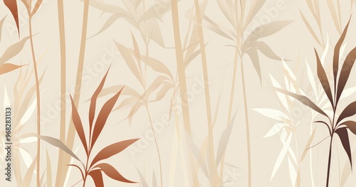 © AthayaStock, Naklejka premium A soft, abstract illustration of bamboo stalks and leaves in muted tones, ideal for backgrounds or design elements.