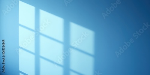 Fototapeta premium A soft blue wall with a delicate and abstract window shadow pattern from the sun's rays