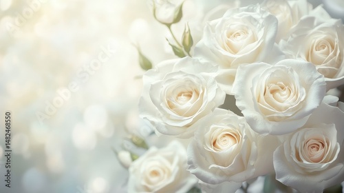 © kamral, Obraz premium A soft-focus floral pattern with elegant white roses