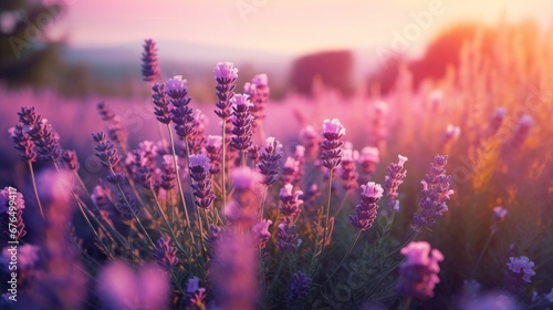 Fototapeta premium A soft focus image of a lavender field with shallow AI generated illustration
