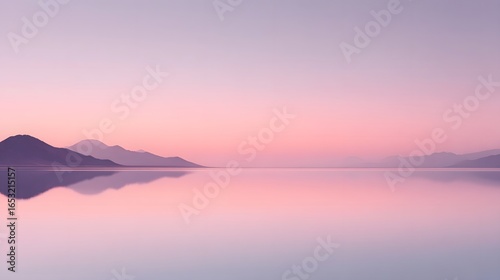 Fototapeta premium A soft glowing frozen lake horizon with pastel reflections in the sky