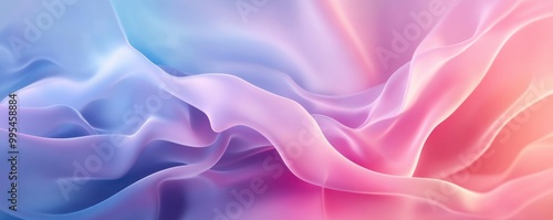Fototapeta premium A soft gradient of blue and pink fabric waves, creating an ethereal and...