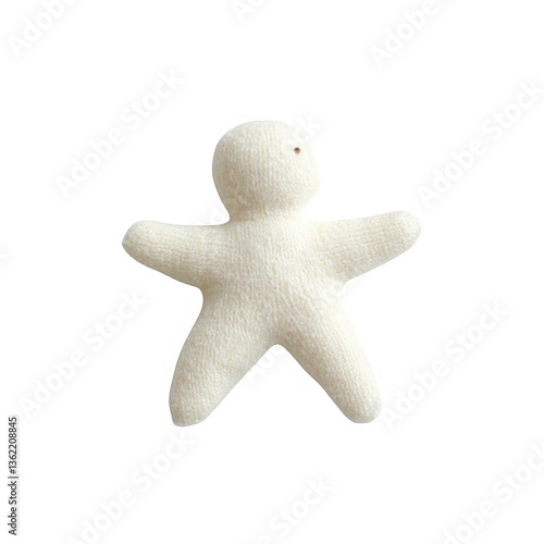 Obraz premium A soft, handmade fabric figure with a simplistic design, isolated against a white background, perfect for creative projects and textile art.