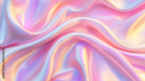 © Emma, Obraz premium A soft, iridescent fabric displays flowing waves of pastel colors, creating a dreamy and elegant visual effect.