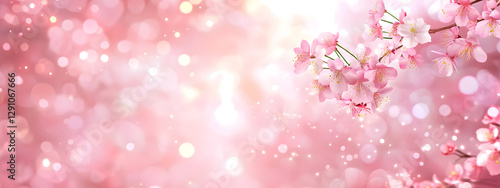 Fototapeta premium A soft pastel background with delicate cherry blossoms and bokeh lights