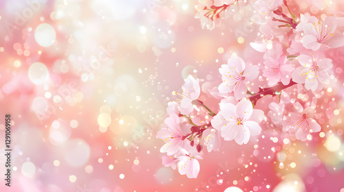 Fototapeta premium A soft pastel background with delicate cherry blossoms and bokeh lights