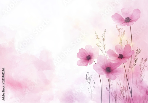 Fototapeta premium A soft, pastel illustration of pink flowers against a light background,...