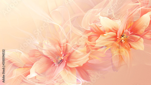 Naklejka premium A soft peach-colored background featuring an elegant floral design, creating...