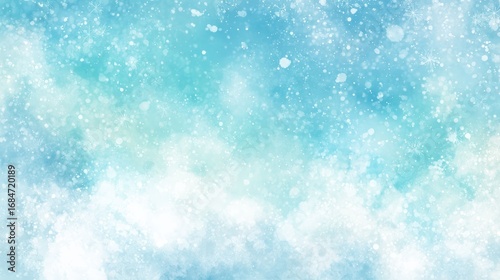 Fototapeta premium A soft watercolor background blending light and deep blue shades with delicate snowflake patterns scattered across the surface, creating a frosty winter atmosphere.