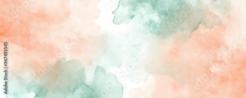 © Thamonchanok, Fototapeta premium A soft watercolor background featuring gentle pink and green hues, perfect for presentations and creative projects.
