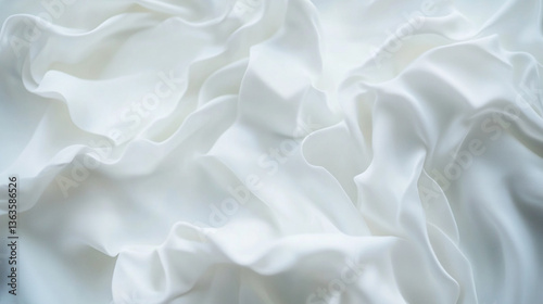 © Sadia, Obraz premium A softly draped white fabric with gentle folds creating a smooth and elegant textured background