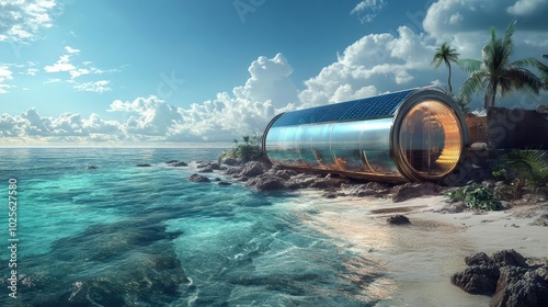 © Woranittha, Fototapeta premium A solar-powered desalinator, turning seawater into fresh drinking water