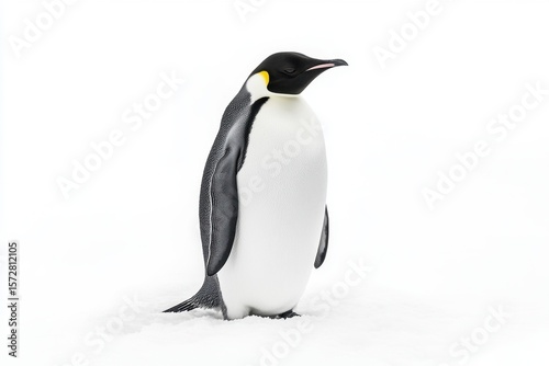Obraz premium A Solemn Emperor Penguin Standing on Snowy Landscape, Capturing the Majesty and Grace of One of Antarctica's Most Iconic Species in Natural Habitat