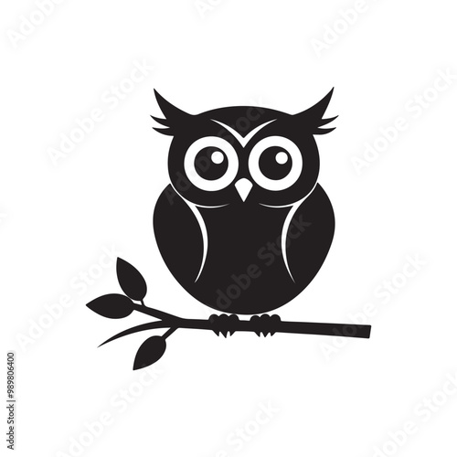 Fototapeta premium A solid black owl silhouette sitting atop a tree branch