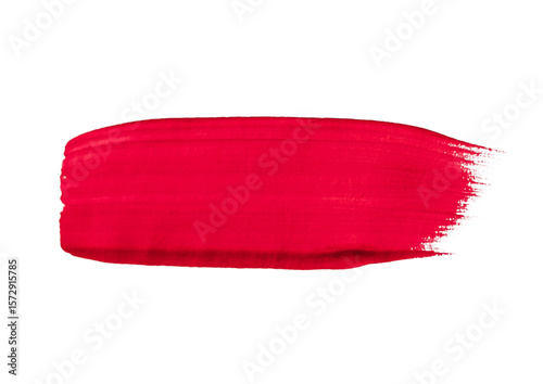 Fototapeta premium A solid red paint stroke with visible brush texture on a light background....