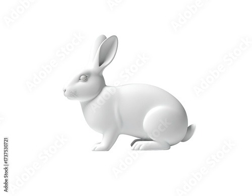 © sabrina, Obraz premium A solid white rabbit figurine, standing in profile against a black background