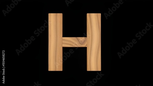 Obraz premium A solid wooden letter h with a natural grain texture isolated on a black...