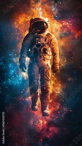 Fototapeta premium A solitary astronaut floating in the vastness, tethered by an astronaut in a...