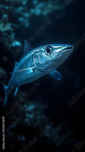 Fototapeta premium A solitary barracuda gliding through the deep dark waters