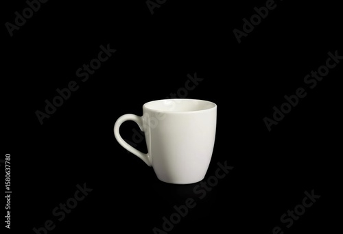 Obraz premium A solitary ceramic coffee cup, stark white, against a pure black background,...