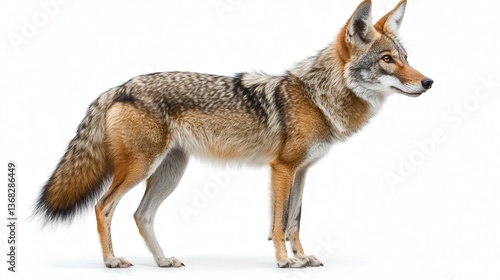 © Drapix, Fototapeta premium A solitary coyote standing gracefully against a white background.