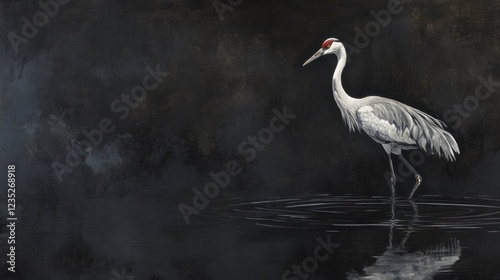 © Penatic Studio, Fototapeta premium A solitary crane stands in dark water