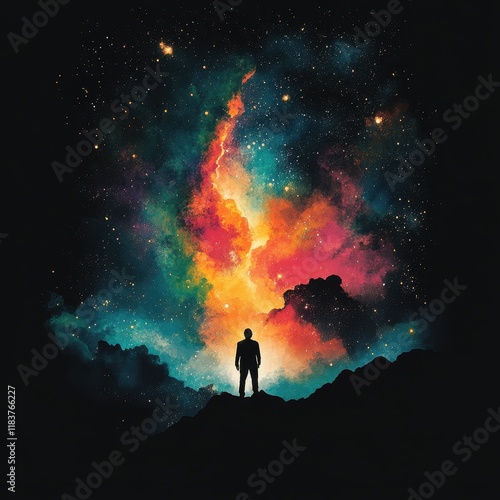 Fototapeta premium A Solitary Figure Contemplates A Cosmic Nebula