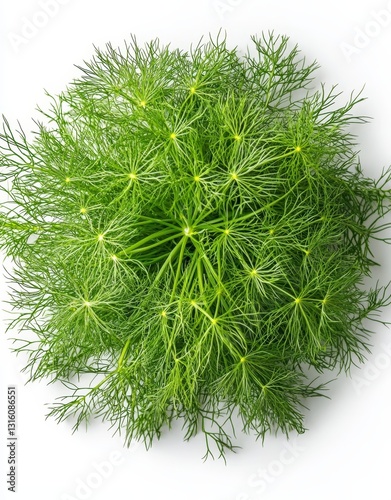 © Maxim Borbut, Fototapeta premium A solitary fresh green asparagus densiflorus, also known as asparagus fern, is set against a white background with the entire scene in focus