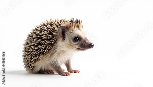 © Tanisa, Fototapeta premium A solitary hedgehog, standing upright, against a pristine white background , standing, single