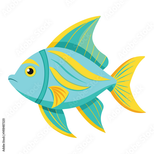 © Anamul, Fototapeta premium A solitary, pale blue fish with vibrant yellow accents along its dorsal fin and tail fin is captured against a stark white background.