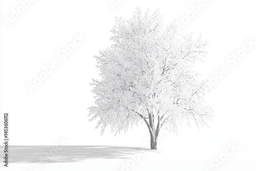 © Surung, Obraz premium A solitary, snow-covered tree stands in a vast white landscape under a clear sky
