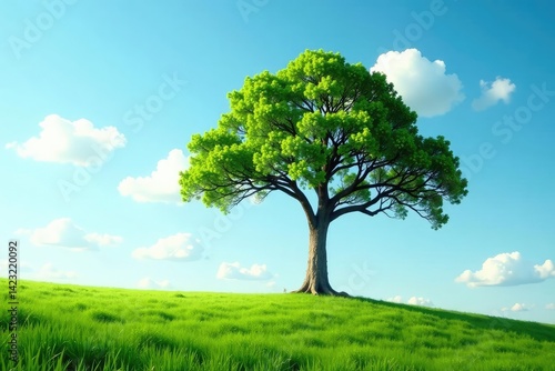 © Maneerat, Obraz premium A solitary tree branch stretches towards the sky, landscape, clean, nature