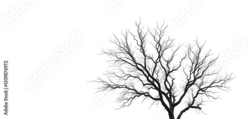 Obraz premium A solitary tree, branches reaching skyward, against a pure white backdrop,...