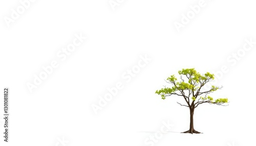 © Phetthanousack, Obraz premium A solitary tree stands against a bright white background, branches reaching upwards, digital art, greenery