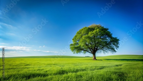 Obraz premium A solitary tree stands tall in a field of verdant grass, its branches...