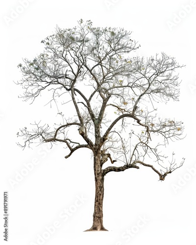 © Leli, Obraz premium A solitary tree with bare branches, isolated on a white background