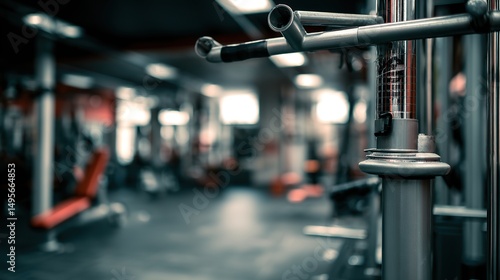 © Elara, Obraz premium A solitary weightlifting machine in a quiet gym, symbolizing focus and dedication to personal strength.