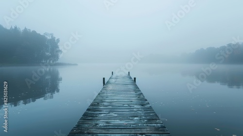 Fototapeta premium A solitary wooden pier extending into a calm lake, with no one around and...