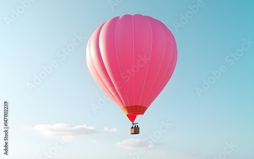 © li, Fototapeta premium A Solo Pink Hot Air Balloon Floating In The Sky. High quality
