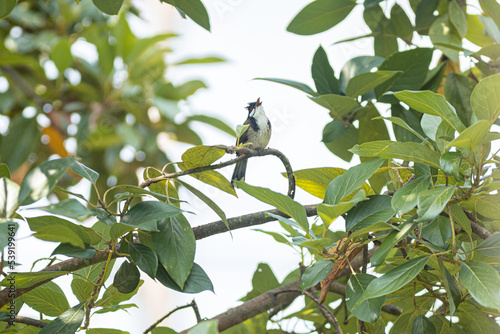 © seesouk, Obraz premium A Sooty-headed Bulbul on a branch a bird with hair style