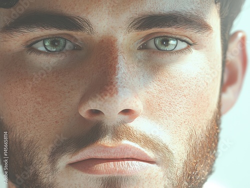 © NKTN, Obraz premium A sophisticated and intelligent clean-shaven man with sharp, captivating eyes