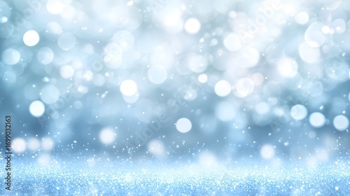 © Nur, Obraz premium A sophisticated backdrop featuring a soft, light blue color palette with glittering, shimmering particles, creating a beautiful, festive, and elegant atmosphere.