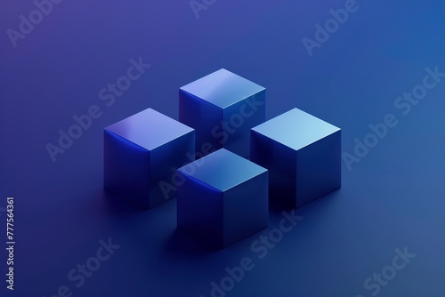 © Martin, Fototapeta premium A sophisticated blue gradient background featuring a geometric arrangement of ice blue to sapphire cubes and boxes, ideal for technology presentations.