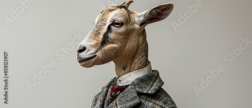 Naklejka premium A sophisticated goat wearing a tailored suit and tie, posed in profile...