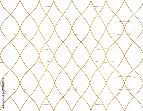 Naklejka premium A sophisticated, golden geometric pattern forms a repeating design on a white...